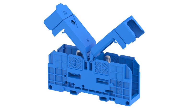 Клемма проходная болтовая 240 мм2, на высокие токи, на 2 подключения, с защитными крышками, синяя SPT240XL-BLUE | код 4315450001 | Elmex