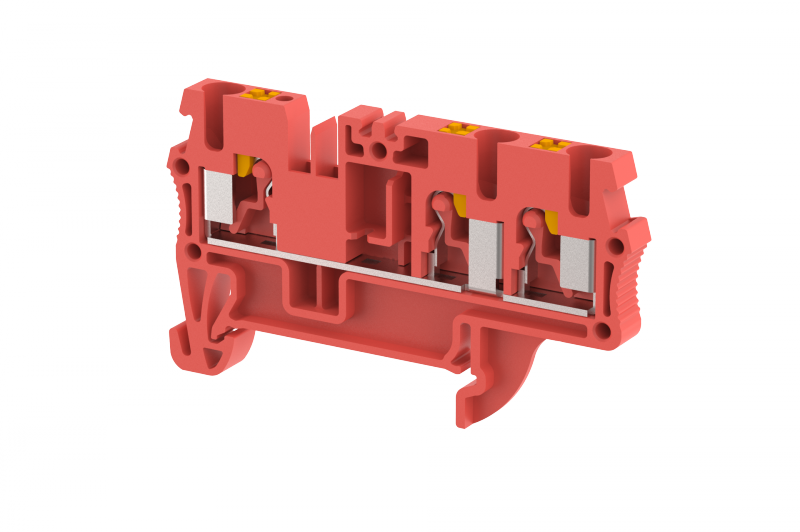 Клемма проходная PUSH-IN 2,5 мм2, на 3 подключения, красная PQ2.5-1X2-RED | код 3102050002 | Elmex