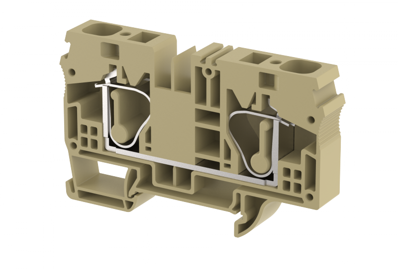 Клемма проходная пружинная 16 мм2, на 2 подключения, хаки SQ16-KHAKHI | код 2106010006 | Elmex