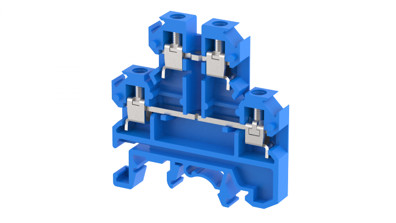 Клемма проходная винтовая 2,5 мм2, двухуровневая, на 4 подключения, зеленая KU2D4(GR) | код 1103380003 | Elmex