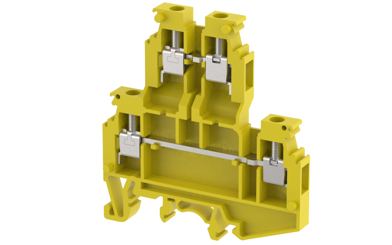 Клемма проходная винтовая 4 мм2, двухуровневая, на 4 подключения, желтая KUDD4N(Y) | код 1103390004 | Elmex