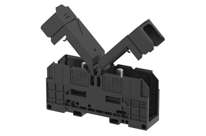 Клемма проходная болтовая 70 мм2, на высокие токи, на 2 подключения, с защитными крышками, черная SPT70XL-BLACK | код 4310450005 | Elmex