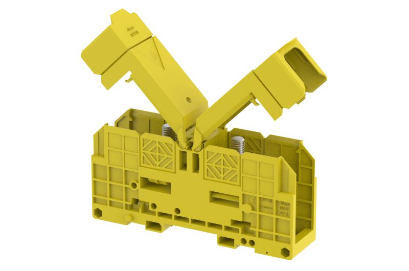 Клемма проходная болтовая 70 мм2, на высокие токи, на 2 подключения, с защитными крышками, желтая SPT70XL-YELLOW | код 4310450004 | Elmex