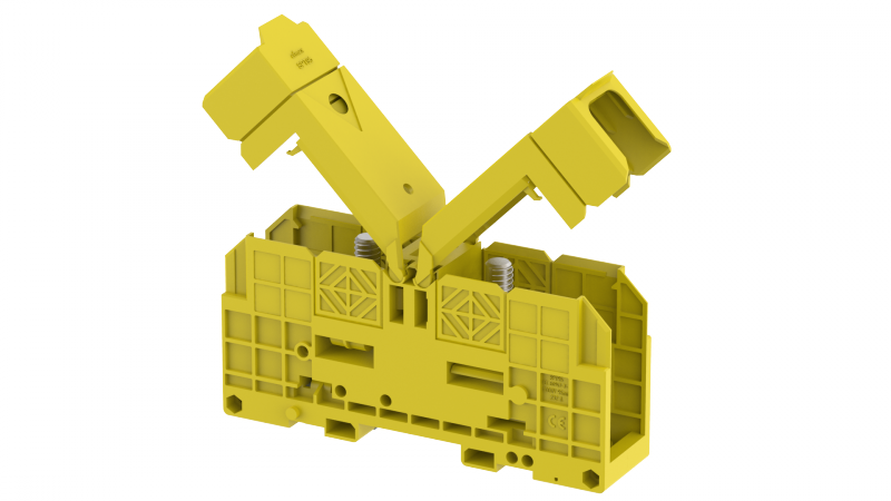Клемма проходная болтовая 95 мм2, на высокие токи, на 2 подключения, с защитными крышками, желтая SPT95XL-YELLOW | код 4311450004 | Elmex