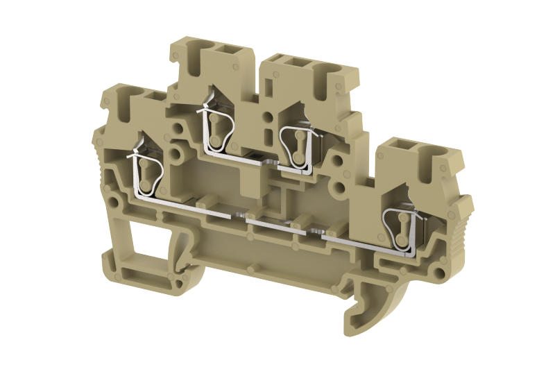 Клемма проходная пружинная 2,5 мм2,двухуровневая, на 2 подключения, хаки SQ2.5-2T-KHAKHI | код 2102020006 | Elmex