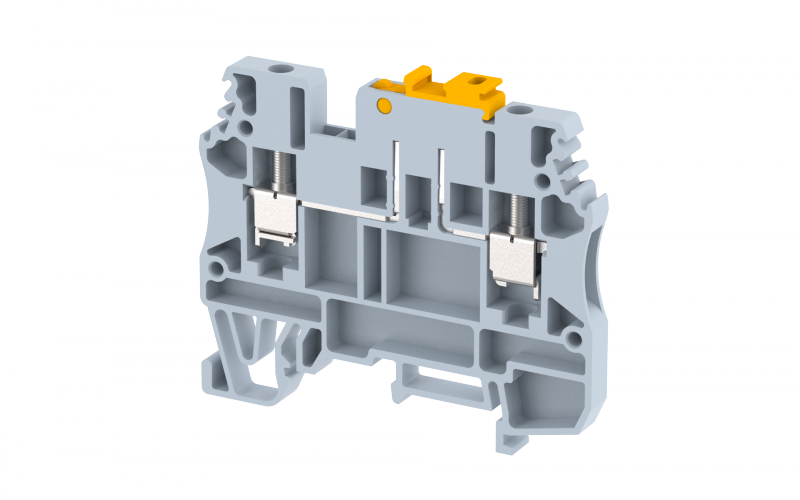 Клемма проходная винтовая 2,5 мм2 с размыкателем, с тестовым гнездом, на 2 подключения, серая DUTKD2.5TS-GREY | код 1702160000 | Elmex