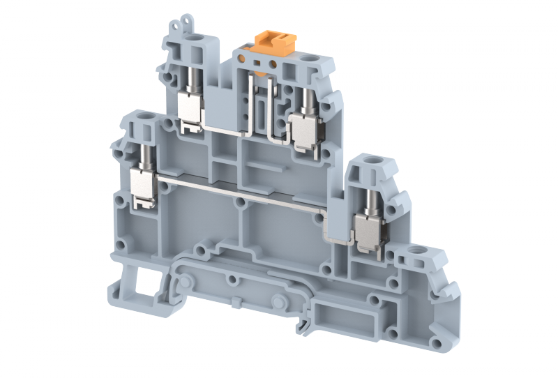 Клемма проходная винтовая 4 мм2, двухуровневая, с размыкателем, на 4 подключения, хаки TQK4-2T-KHAKHI | код 1203340006 | Elmex