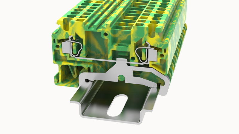 WS2.5-PE-01P-1C-00Z(H) Клеммный блок (клеммник) заземл. пружин., на DIN-рельс TS-35/TS-32, сеч. пров. 24-14AWG/ до 2.5 кв.мм, желто-зелен. изол., шир. 5.0 мм | код 11030000183 | DEGSON