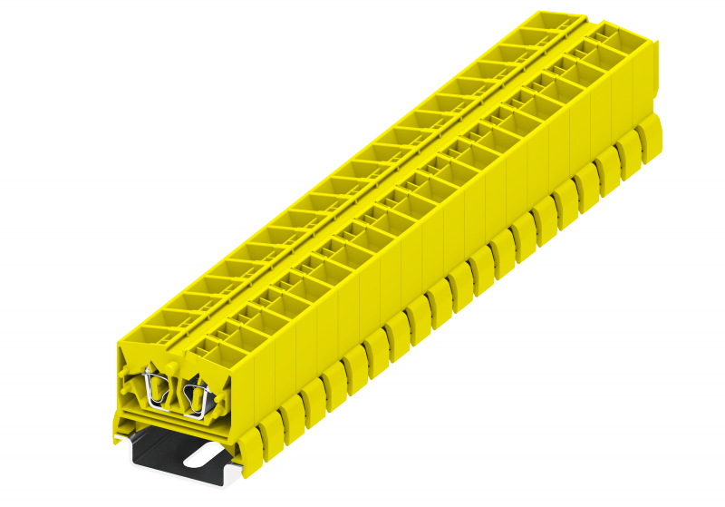 254385 Клемма TB 2-2 проходная на DIN-рейку SP35, фронт.подключение, сеч. 2.5мм2, жёлт., шт | код 254385 | SUPU