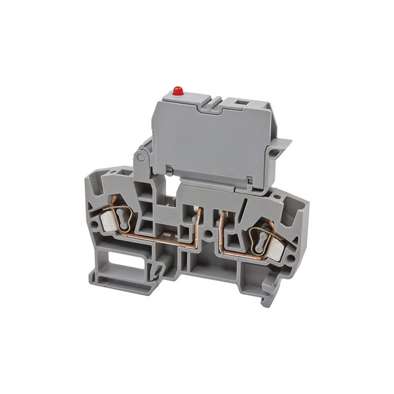 355 759, Клеммник пружинный с держ. предохр. (5х20, 5х25), откид.картридж, с индикацией 110VAC, на DIN-рейку, 4 мм.кв., (серый), YBK SLD 110VAC | код 0.0.0.3.55759 | KLEMSAN
