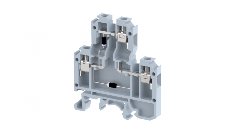 Клемма проходная винтовая с электронными компонентами 2,5 мм2, двухуровневая, 2 диода 1N 4007 с общим катодом, на 3 подключения, серая KUDD4CC1_MT0716C(G) | код 1102520310 | Elmex
