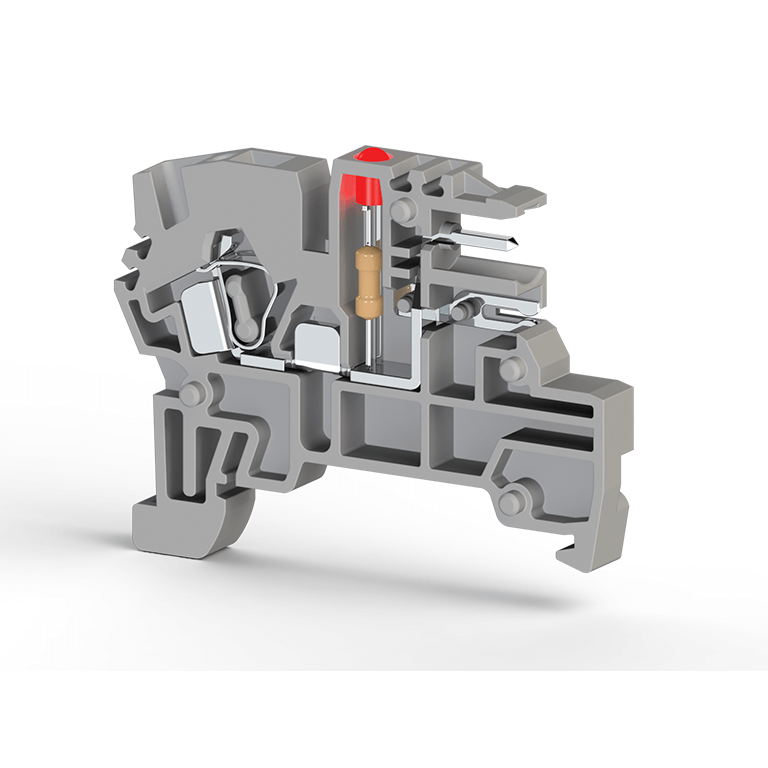 364 033, Клеммник пружинный с разъёмом, с индикацией 110 VDC, на DIN-рейку, 2,5 мм.кв., (серый), PCY 2,5L | код 0.0.0.3.64033 | KLEMSAN