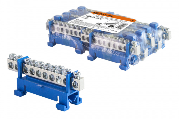 Шина N нулевая с изолятором на DIN-рейку 6x9мм стойка мал. 10 групп никелированная TDM | код SQ0801-0322 | TDM
