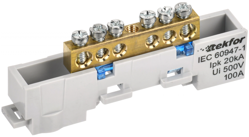 TEKFOR Шина N ноль неизолированная на универсальном держателе 6х9-4-С IEK | код TF-NN10-04-DL-K07 | IEK