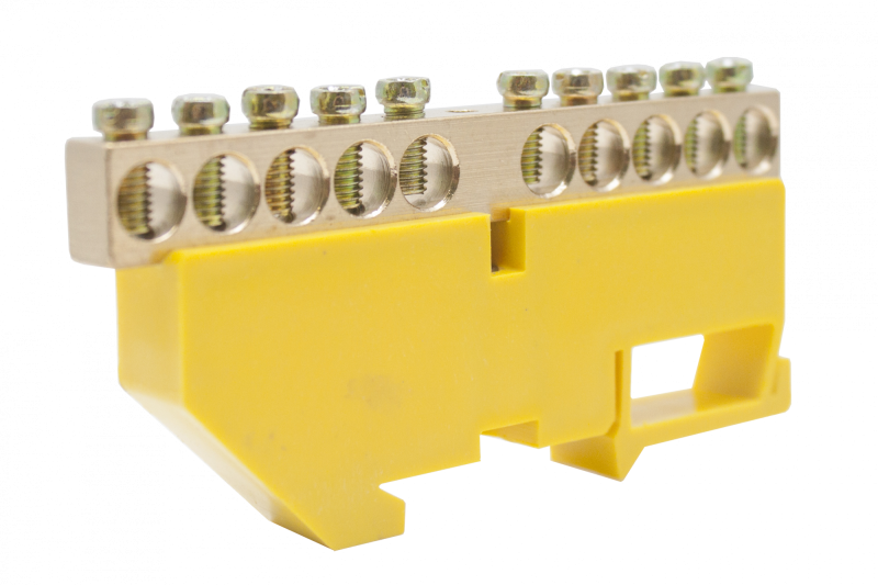 Шинки нулевые латунные на дин-опоре ШНИ 8х12мм 10 отв. цвет желтый | код DBN-28-10PE | Engard