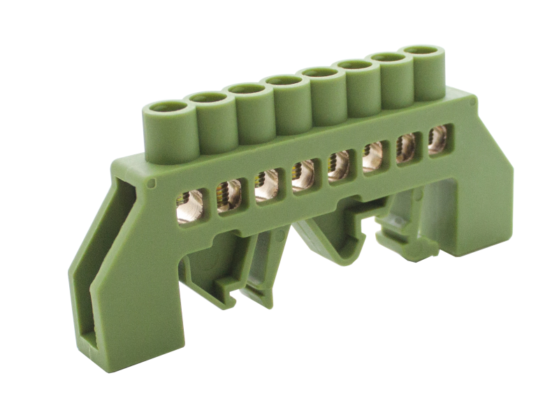 Шинки нулевые латунные универсальные ШНИ 6х9мм 8 отв. цвет зеленый | код DBN-16-08PE | Engard