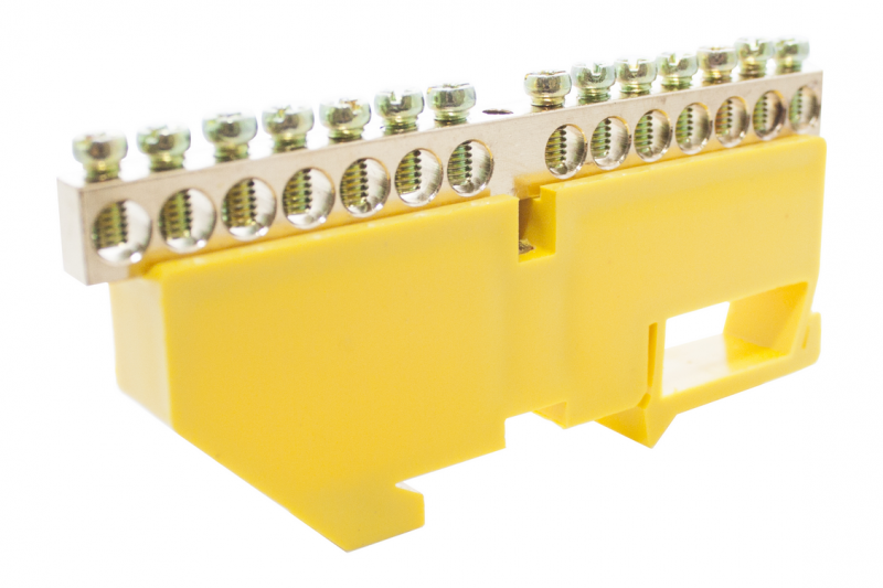 Шинки нулевые латунные на дин-опоре ШНИ 6х9мм 14 отв. цвет желтый | код DBN-26-14PE | Engard