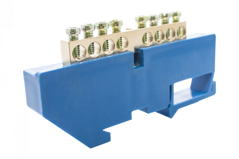 Шинки нулевые латунные на дин-опоре ШНИ 6х9мм 8 отв. цвет синий | код DBN-26-08N | Engard