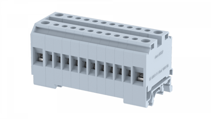 Распределительный блок с винтовым подключением 10 мм2 на входящий провод, 4 мм2 на отходящий провод, на 24 подключения, синий DFBK12B | код 4505302411 | Elmex