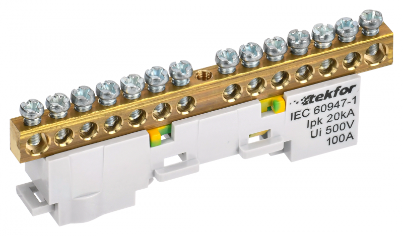 TEKFOR Шина PE земля неизолированная на универсальном держателе 6х9-16-Ж IEK | код TF-NN10-16-DL-K05 | IEK