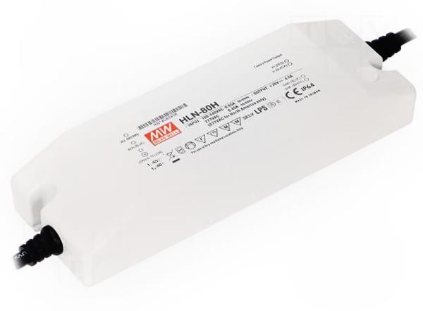 Источник питания AC-DC, 80Вт, IP64, вход 90…305В AC, 47…63Гц/127…431В DC, ККМ, выход 48В/1.7А, рег. выхода 1…1.7A, изоляция 3750В AC, в кожухе 181х61.5х35мм, -30…+50С. Рег-ка вых. тока по кабелю | код HLN-80H-48B | MeanWell