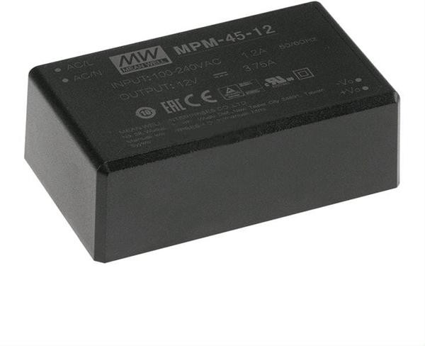 Источник питания AC-DC, 45.1Вт, вход 80…264В AC, 47…63Гц / 113…370В DC, выход 48В/940мА, КПД 92%, ток утечки <100мкА/264В AC, изоляция 4000В AC, в корпусе 109х52х33.5мм, -30…+80С, клем. колодка | код MPM-45-48ST | MeanWell