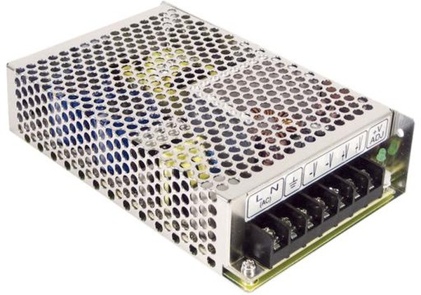 Источник питания AC-DC, 100Вт, вход 88…264В AC, 47…63Гц / 125…373 В DC, выход 15В/7A, рег. вых 14.25…16.5 В , изоляция 3000В AC, в кожухе 159х97х38мм, -20…+70С | код RS-100-15 | MeanWell