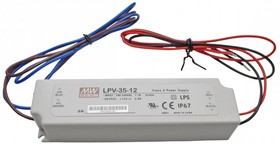 Источник питания AC-DC, 36Вт, IP67, вход 90…264В AC, выход 12В/3А,изоляция 3000В AC, в кожухе 148х40х30мм, -30…+75С | код LPV-35-12 | MeanWell