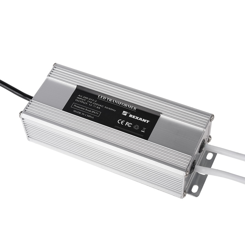 Источник питания 110-220 V AC/12 V DC 6 А 72 W с проводами влагозащищенный (IP67) | код 200-072-2 | REXANT