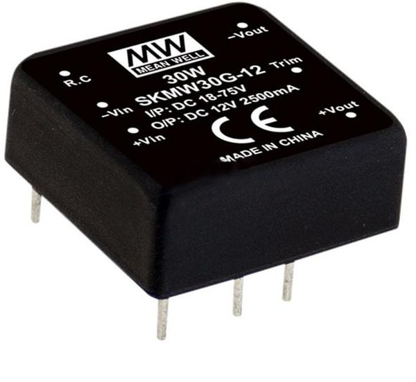 Источник питания DC-DC, 24.8Вт, Uвх=18…75B, Uвых=3.3В/7.5А, рег. вых=±10%Uном, вход дист. управл., изоляция 1500В DC, в корпусе 25.4х25.4х10.2мм, -40С…+85С | код SKMW30G-03 | MeanWell