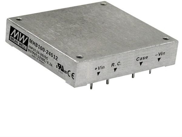 Источник питания DC-DC, 100Вт, вход 36…75В, выход 24В/4.17А, рег.выхода ±10% Uном, изоляция 1500В DC, в корпусе на печатную плату 57.9х61x12.7мм, -40…+100С, дист вкл/выкл | код MHB100-48S24 | MeanWell