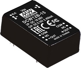 Источник питания DC-DC, 12Вт, вход 18…36В, выходы ±12В/±0.1...0.5А, изоляция 1500В DC, дистанционное включение, DIP24 32х20.3х12,2мм, -25...+71С | код DCW12B-12 | MeanWell