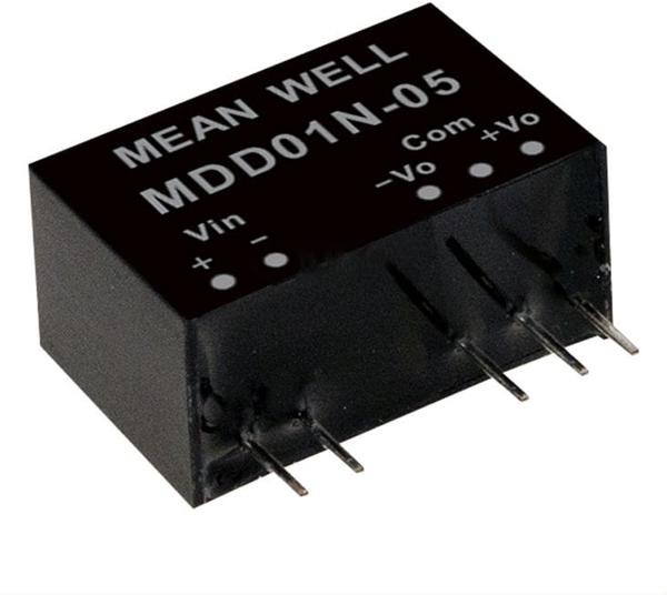 Источник питания DC-DC, 1 Вт, вход 21.6…26.4В, выход ±5В/±100мА, изоляция 6000В DC, SIP7 19.5х9.8х12.5мм, -40...+85С | код MDD01N-05 | MeanWell