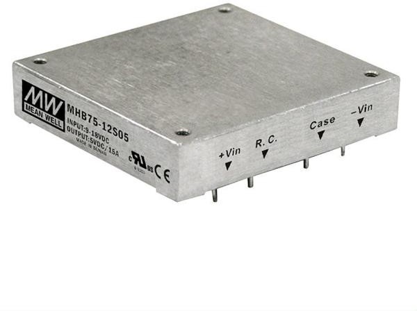 Источник питания DC-DC, 75Вт, вход 9…18В, выход 24В/3.13А, рег.выхода ±10% Uном, изоляция 1500В DC, в корпусе на печатную плату 57.9х61x12.7мм, -40…+100С, дист вкл/выкл | код MHB75-12S24 | MeanWell