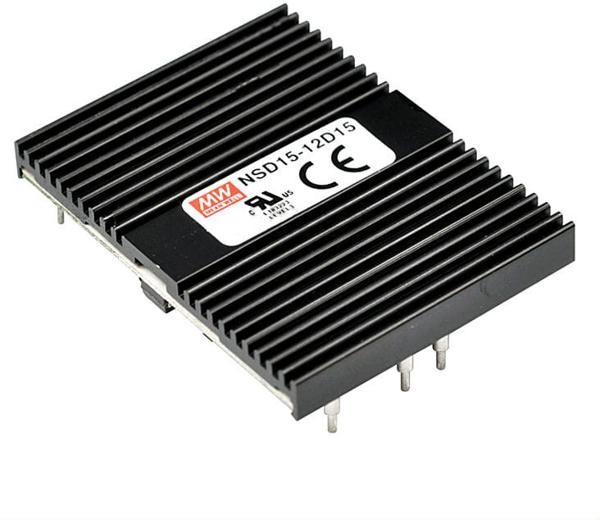 Источник питания DC-DC, 15Вт, вход 9,4…36В, выход ±5В/±0,07...1,5А, изоляция 1500В DC, корпус 50,8х38,1Х9,82мм, -25…+70С | код NSD15-12D5 | MeanWell