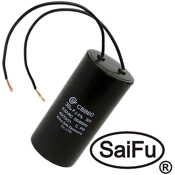 Пусковой конденсатор SAIFU CBB60, 30 мкФ, 630 В, с проводом | код 100271 | Saifu