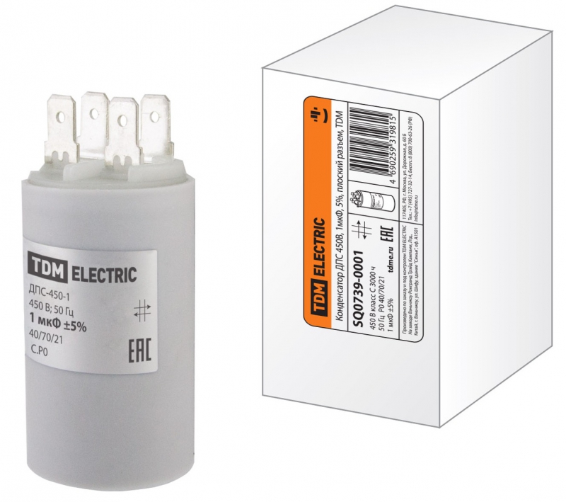 Конденсатор ДПС 450В, 1мкФ, 5%, плоский разъем, TDM | код SQ0739-0001 | TDM