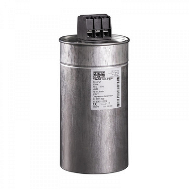 Конденсатор CSADG 1-0,44/14N, трехфазный, 14kVAr(440VAC), 11.5kVAr(400VAC), MKP заполненный газом, двухстор. клеммник S=16mm?, нормальный режим, IP20 | код Z058588 | ZEZ Silko