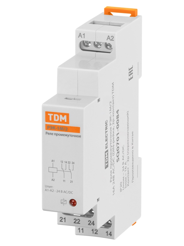 Реле промежуточное РЭК-1М/2 16А 24В АС/DC (DIN-рейка, 2р-контакт) TDM | код SQ0701-0084 | TDM