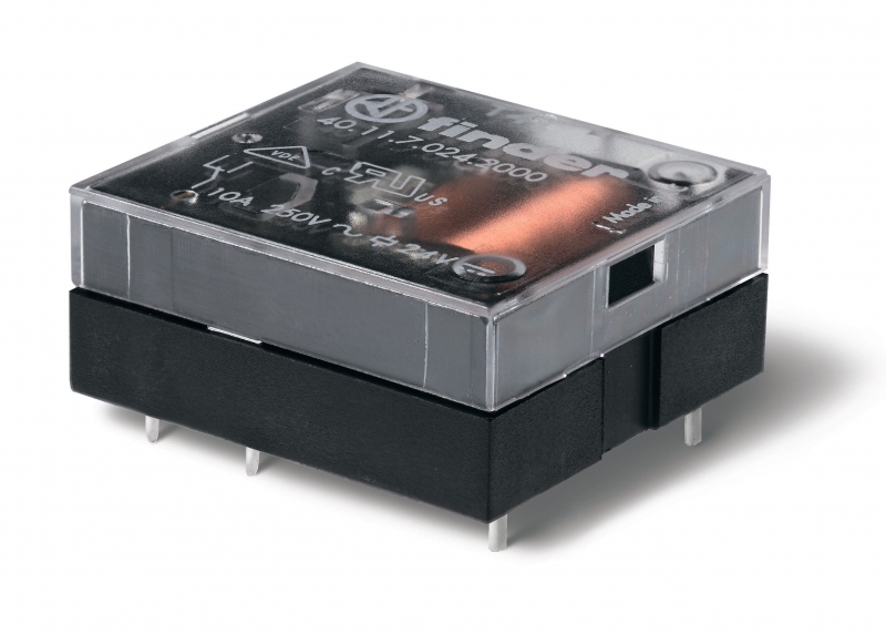 Миниатюрное универсальное электромеханическое реле, монтаж на печатную плату, плоские, выводы с шагом 3.5мм, 1CO 16A, контакты AgCdO, катушка 24В DC (чувствит.), степень защиты RTI | код 401170242016 | FINDER