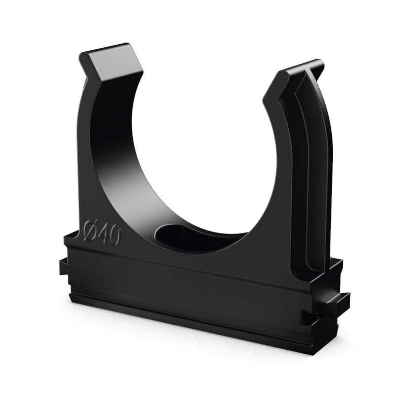 Крепёж-клипса для труб Полистирол черная d40 мм в малой упаковке (10шт/300шт уп/кор) Промрукав | код PR13.0213 | ПРОМРУКАВ