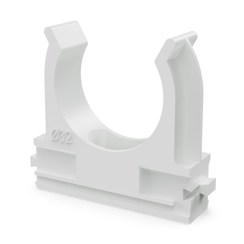 Крепёж-клипса для труб Полистирол белая d32 мм (25шт/500шт уп/кор) Промрукав | код PR.02732б | ПРОМРУКАВ