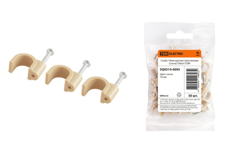 Скоба 10мм круглая пластиковая (сосна) (50шт) TDM | код SQ0514-0095 | TDM
