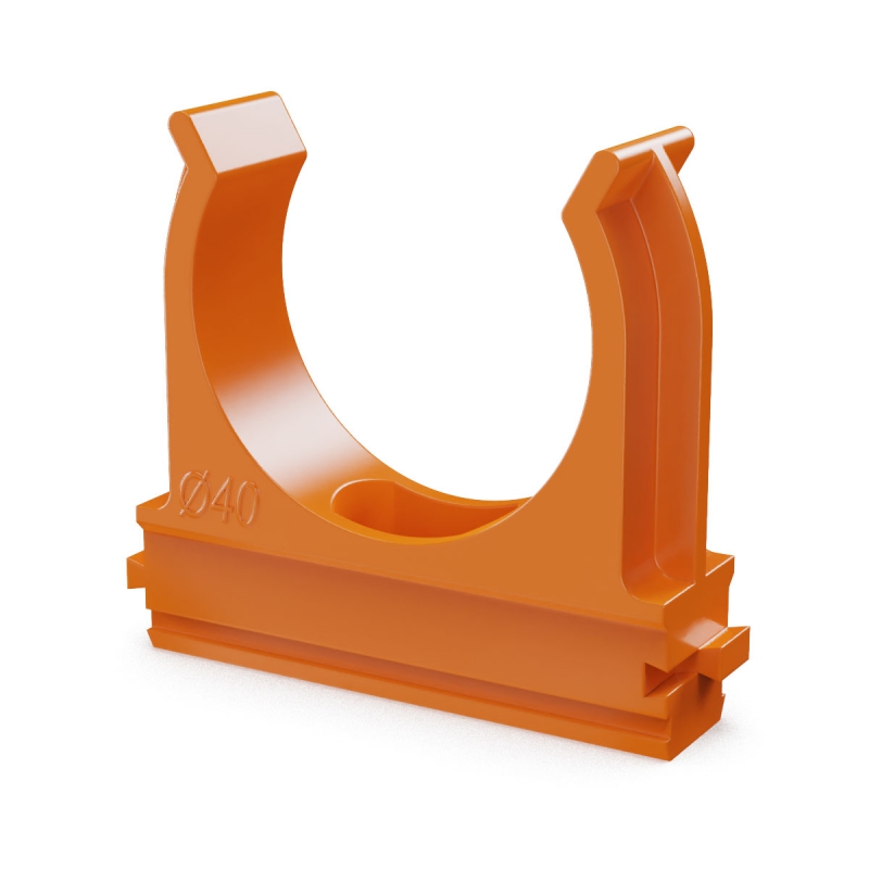 Крепёж-клипса для труб АБС-пластик оранжевая d40 мм в малой упаковке (10шт/300шт уп/кор) Промрукав | код PR13.0116 | ПРОМРУКАВ