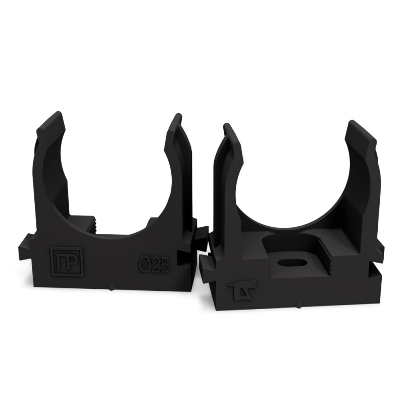 Крепеж-клипса для труб атмосферостойкая для прямого монтажа черная в п/э d25 мм (100шт/700шт уп/кор) Промрукав | код PR13.0407 | ПРОМРУКАВ