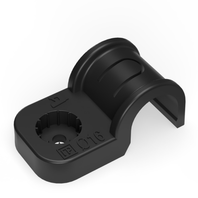 Крепеж-скоба пластиковая односторонняя для прямого монтажа атмосферостойкая черная в п/э d16 мм (50шт/750шт уп/кор) Промрукав | код PR13.0372 | ПРОМРУКАВ