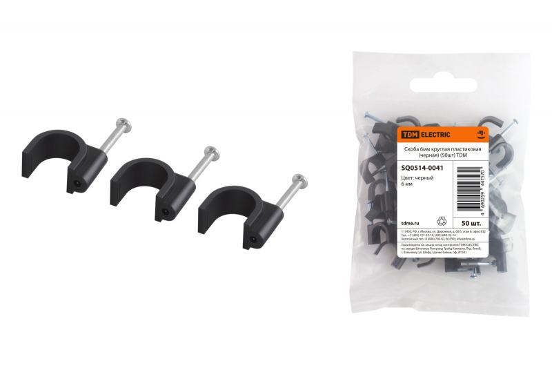 Скоба 6мм круглая пластиковая (черная) (50шт) TDM | код SQ0514-0041 | TDM