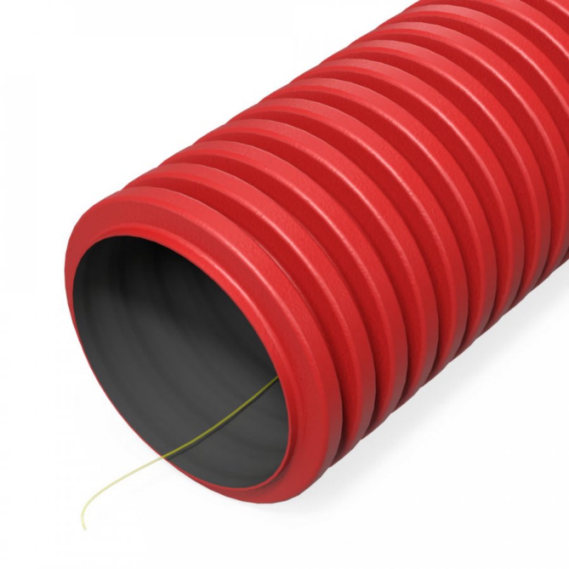 Труба гофрированная двустенная ПНД гибкая тип 1250 (SN41) с/з красная d75 мм (50м/100м уп/пал) Промрукав | код PR15.00998 | ПРОМРУКАВ