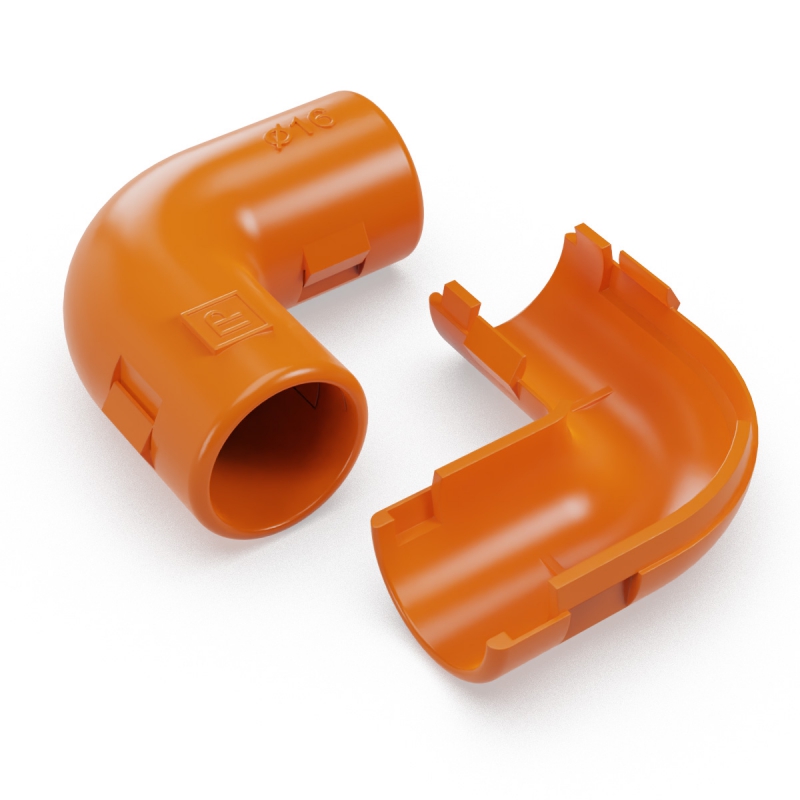 Соединитель угловой разборный оранжевый d16 мм (5шт/700шт уп/кор) Промрукав | код PR13.02480 | ПРОМРУКАВ