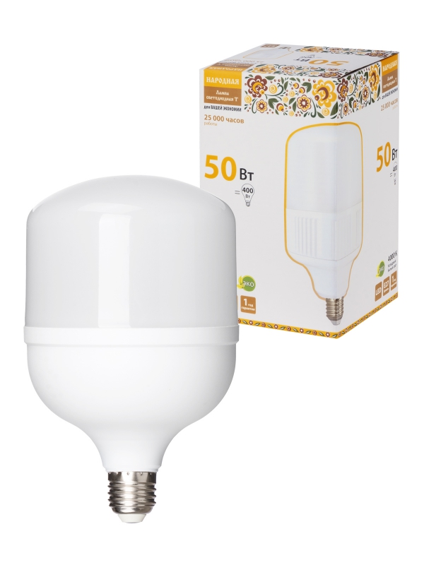 Лампа светодиодная T-50 Вт-230 В-4000 К–E27 (125x206 мм) НАРОДНАЯ | код SQ0340-1646 | TDM НАРОДНЫЙ